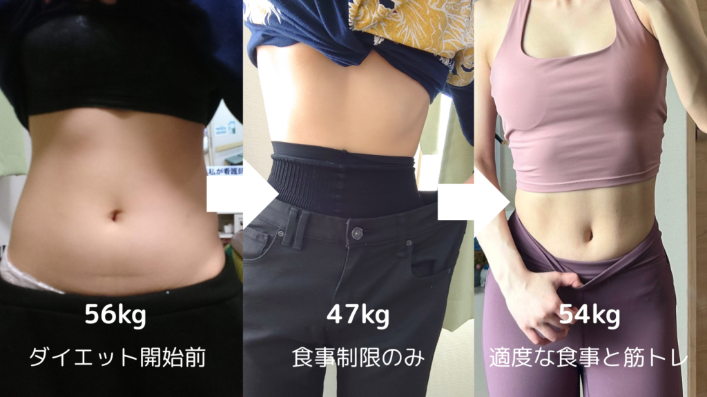 体重は 56kg → 47kg まで落ちました。
